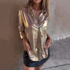 Paketet innehåller: 1 * Kvinnors skimrande metalliska läderknappskjorta