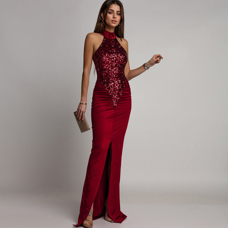 Paketet innehĂ„ller: 1ĂVackra maxiklĂ€nning med paljetter och halterneck för kvinnor